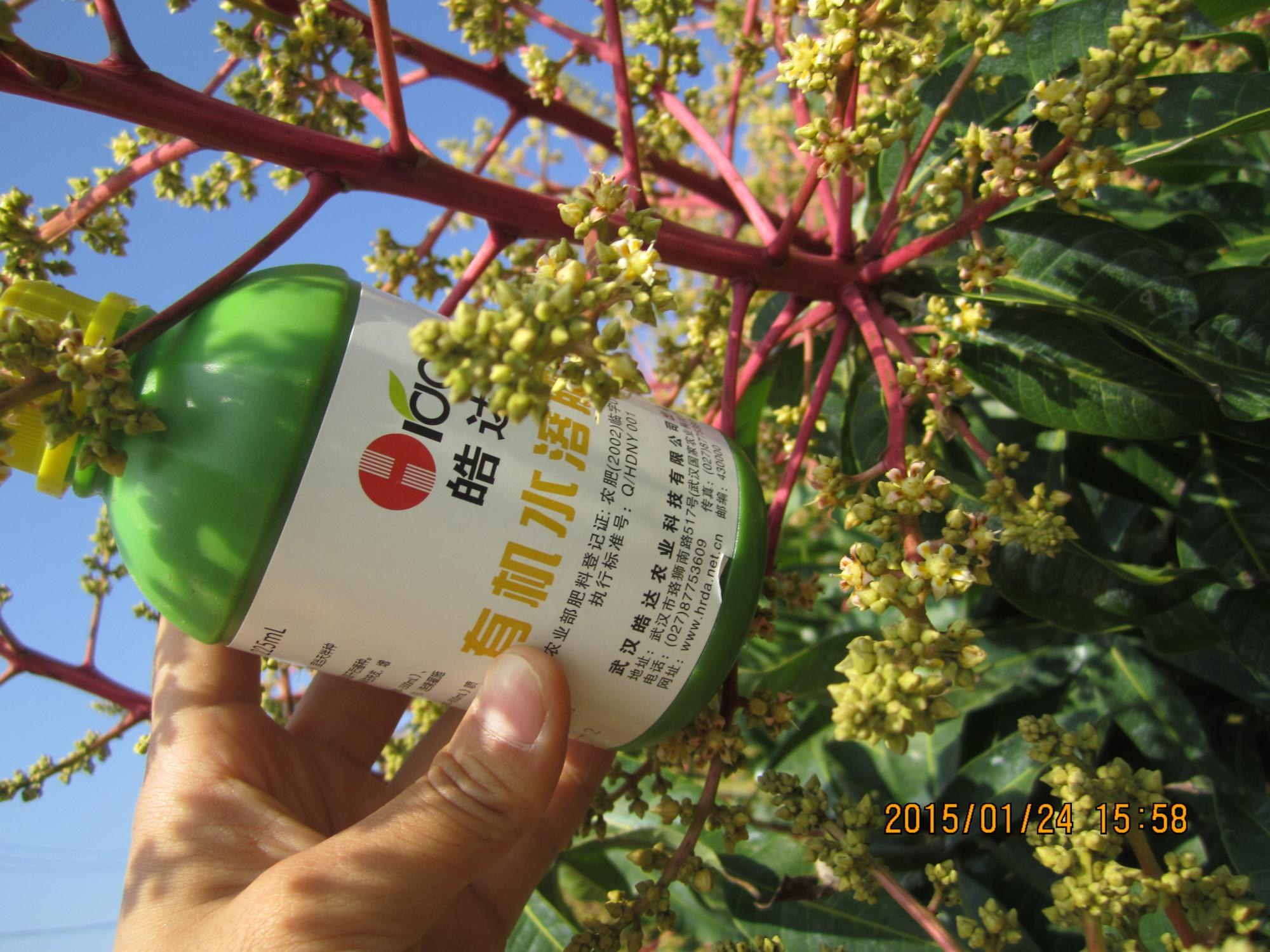 具體情況:盧師傅家種植有三千多株芒果樹,經朋友介紹,接觸到皓達有機水溶肥料。朋友告訴他皓達有機水溶肥料的效果非常不錯,特別是在催花、保果和幼果膨大期使用變現特別明顯。聽朋友這樣說,盧師傅便買了一部分皓達有機水溶肥料,準備回家選出一分部果樹來做試驗。
