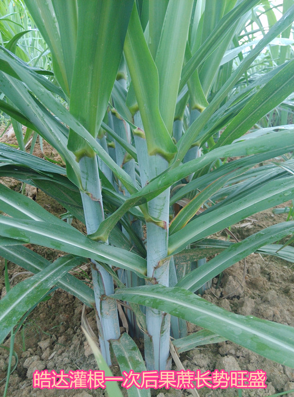 4、伸長期:此時期是黑皮果蔗生長最旺盛的階段,對水肥需求量較大,該時期可將皓達(dá)稀釋800-1000倍或是稀釋1200倍同復(fù)合肥一起灌根,可使黑皮果蔗節(jié)間距均勻、適中。