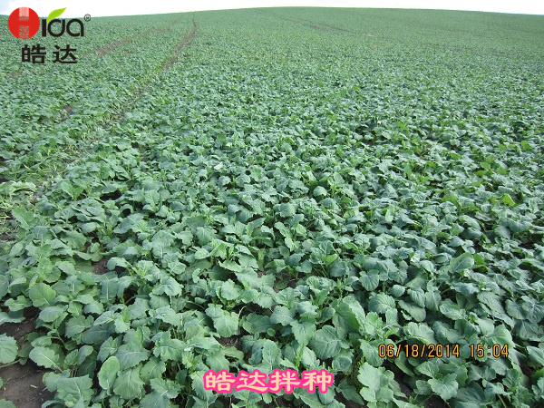 北方春油菜種植地區(qū)5月份普遍風(fēng)大,降雨偏少,土壤濕度不夠,經(jīng)常出現(xiàn)出苗少,苗不齊,抗旱能力較差的情況,嚴(yán)重年分苗子缺水死亡,經(jīng)多年綜合實(shí)驗(yàn)效果,利用皓達(dá)拌種能夠有效緩解這些情況。經(jīng)過(guò)皓達(dá)處理,苗期根系發(fā)達(dá),吸水能力強(qiáng),出苗整齊。(5月9日播種)