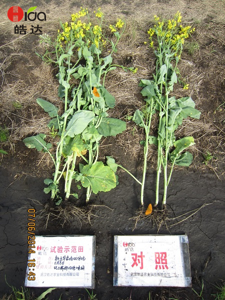 說(shuō)明:噴施皓達(dá),主根系長(zhǎng),側(cè)根發(fā)達(dá),開(kāi)花量大,葉片較大,葉色綠,主花序開(kāi)花較多。