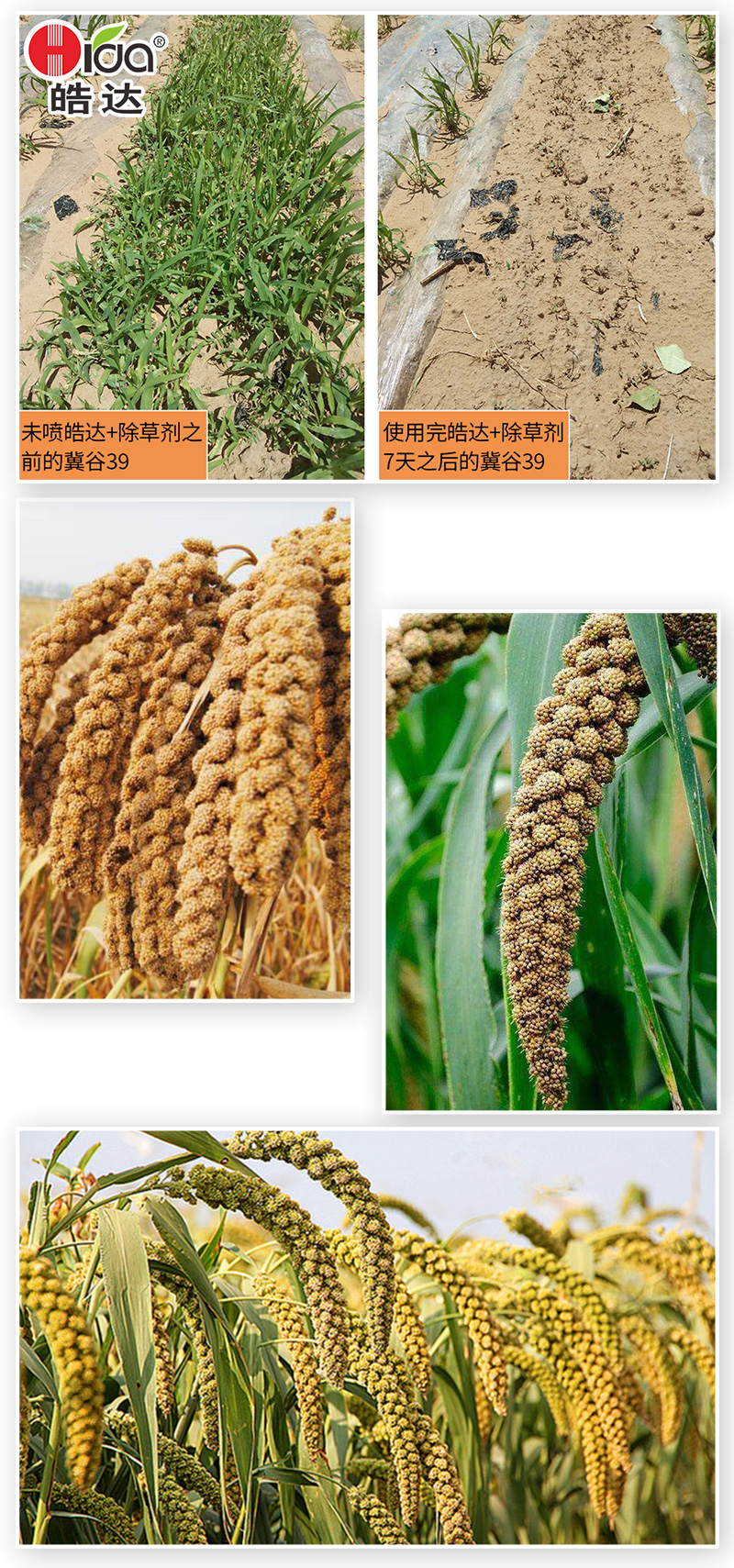施肥時(shí)期:孕穗抽穗開花期 時(shí)期問題: 此時(shí)為吸肥高峰,會(huì)出現(xiàn)營養(yǎng)供應(yīng)問題引起生長緩慢,葉片黃薄或貪青徒長; 施肥方案: 淋根:皓達(dá)功能肥1000倍(100mL/畝)+皓達(dá)硼1200倍(62.5mL/畝)+磷酸二氫鉀1200倍(200g/畝) 葉噴:皓達(dá)功能肥500倍(50mL/畝)+皓達(dá)硼800倍(62.5mL/畝)+磷酸二氫鉀300倍(100mL/畝) 施肥效果: 促進(jìn)花穗的發(fā)育,提高結(jié)實(shí)率,避免谷子貪青徒長。