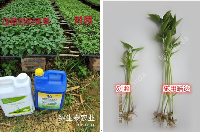 施肥時期:苗床控旺 時期問題: 苗弱,根細,抗逆性差; 施肥方案: 葉噴: 皓達功能肥200倍(75-100mL/30斤水)(必須單獨噴施) 施肥效果: 根系發達,節間短,莖粗壯、葉厚綠。