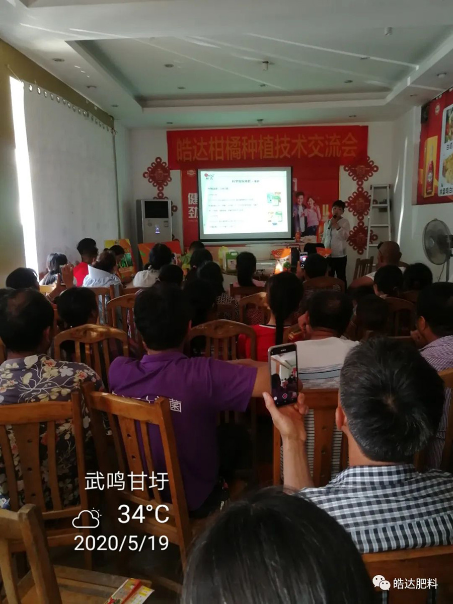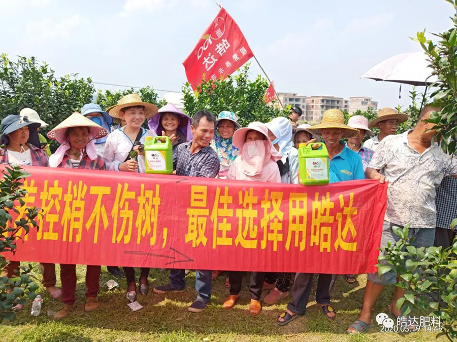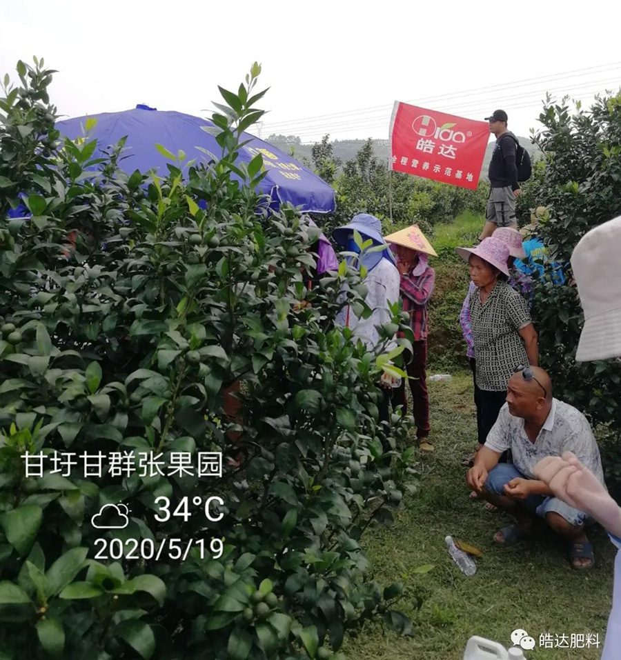 ?2020年5月19日,皓達(dá)農(nóng)化服務(wù)團(tuán)隊(duì)到了廣西武鳴甘圩地區(qū),開展了柑橘示范觀摩會,地點(diǎn)在甘群張老板的果園里,甘老板用了皓達(dá)營養(yǎng)控梢保果方案之后,果園葉片厚綠、幼果膨大快,果量多,保果穩(wěn)。
