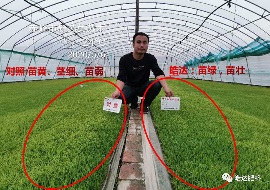 - “送嫁肥”在移栽前3~5天施用,使用皓達(水育秧100克一壺水,旱育秧45克一壺水)進行葉面噴施。