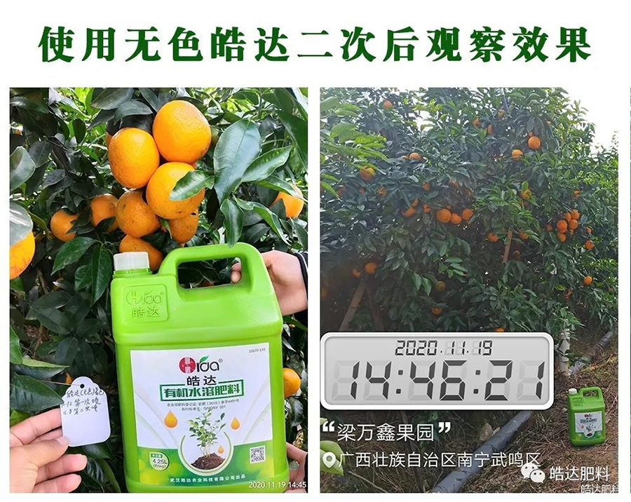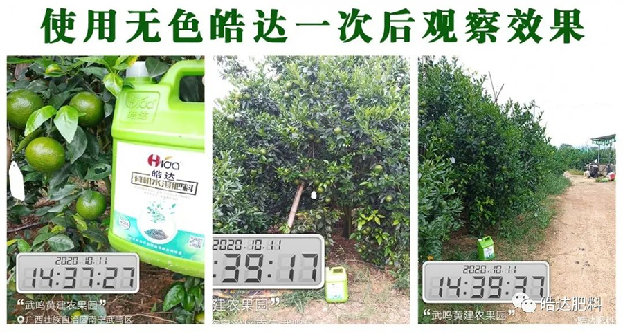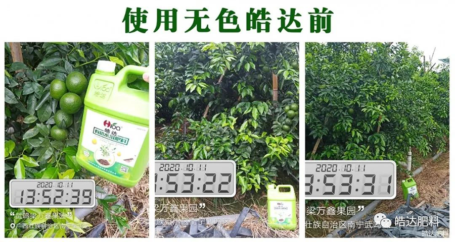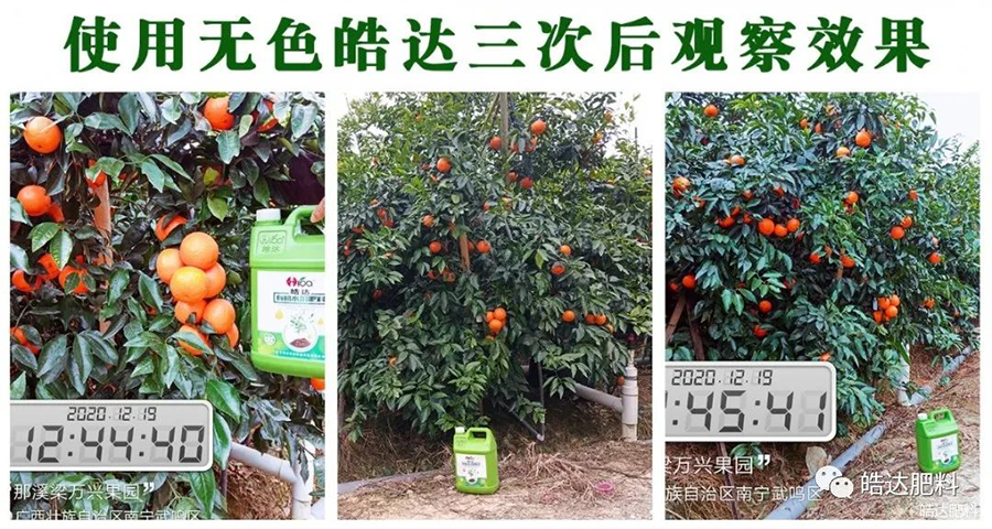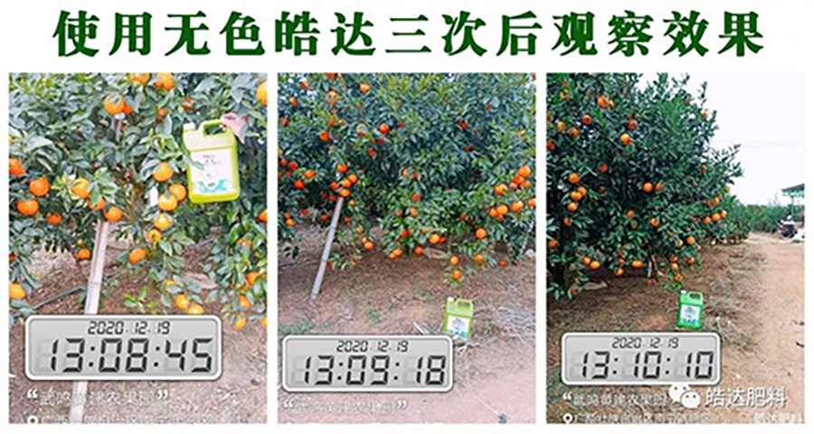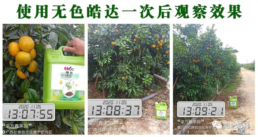 針對目前沃柑著色方案五花八門,果農(nóng)朋友無從選擇。經(jīng)過廣大農(nóng)戶多年使用和很多果園之間的對比,目前無色皓達加調(diào)節(jié)劑的使用效果是非常好的選擇;可以讓整個果園均勻著色,而且果皮都是紅色。
