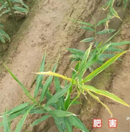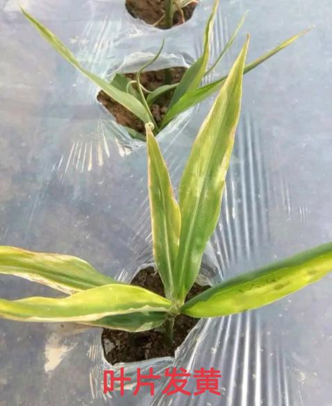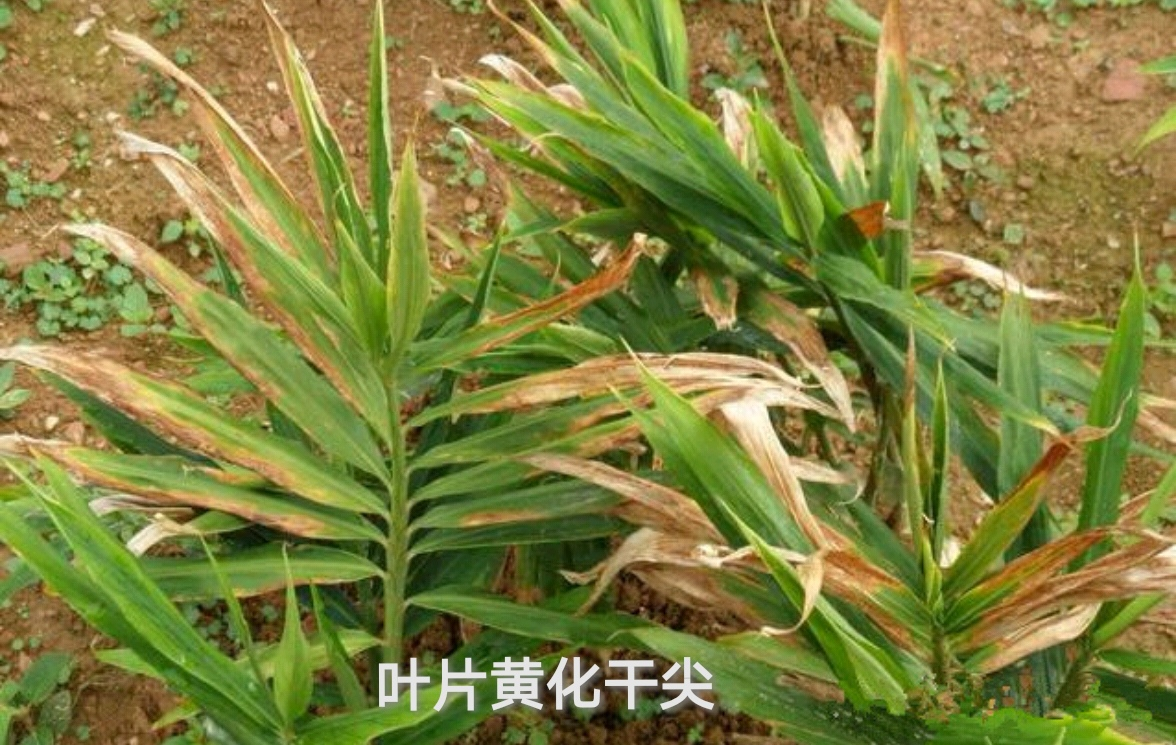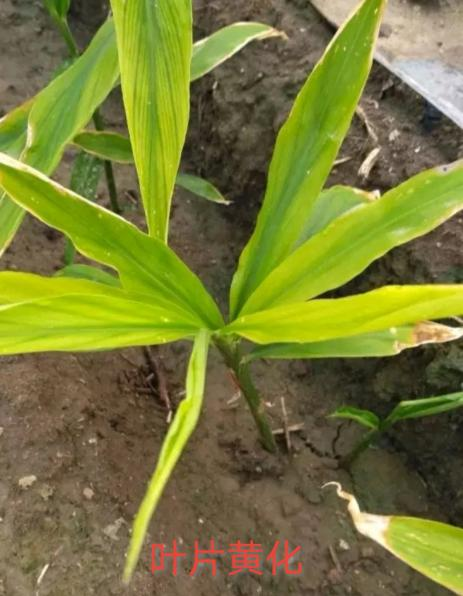 癥狀:大姜缺鋅生長受抑制,節間短,株型矮縮,頂端葉片直立,葉小,葉面上出現灰色至古銅色的不規則斑點,葉緣上卷。嚴重時葉柄及莖上均出現褐點或斑塊。