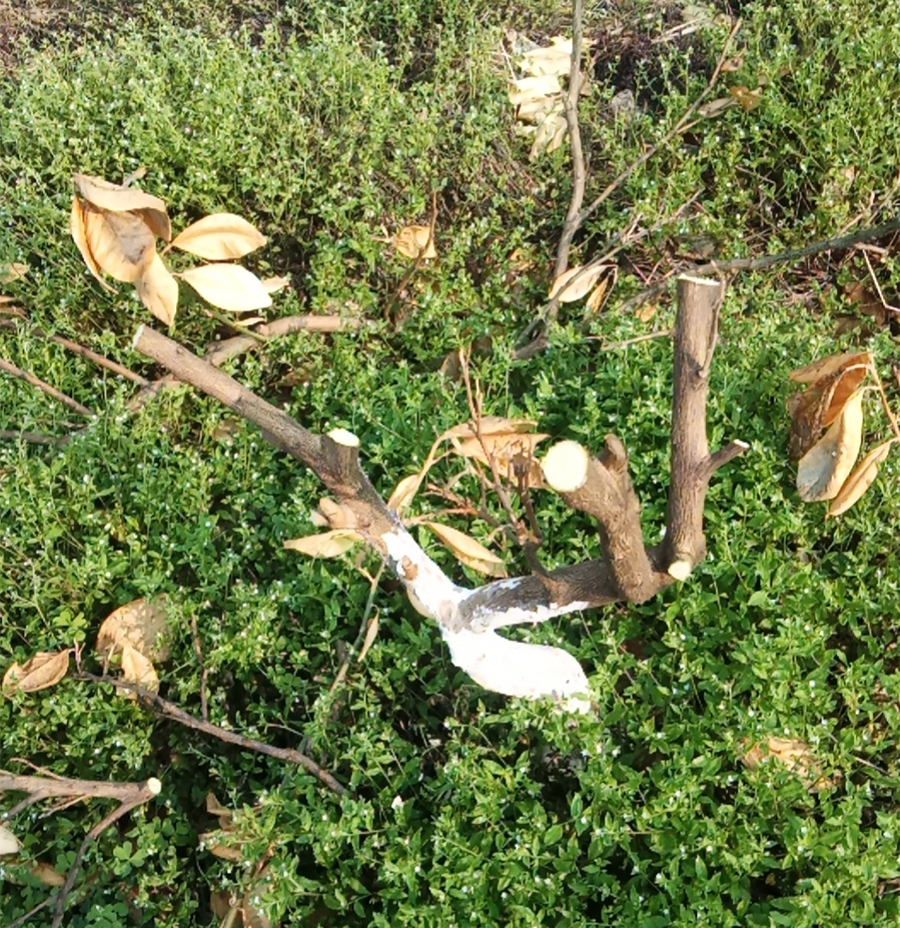 4.合理修剪保護樹干。對凍后果樹及時摘除受凍而未脫落的葉片,對凍死的和干枯的枝條應在春季果樹萌芽后,再進行短截修剪,剪去枯死部分,待剪口愈合后,再將其下部過多、不適當的嫩梢抹除。通過修剪處理,使骨干枝分布均勻、樹冠開朗、通風透氣、重新培養好的結果樹冠,再修剪處理寒害。