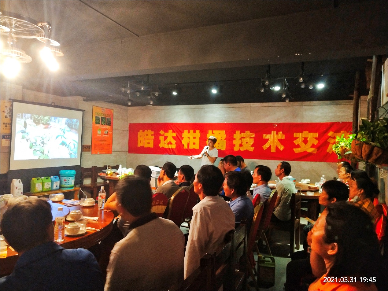 本次會議我們很榮幸邀請到了武漢皓達農化技術服務的梁老師,她就如何解決柑橘花果同期,梢多花少,保果控梢等三個方面的問題,與農民朋友進行了細致的交流講解。