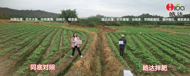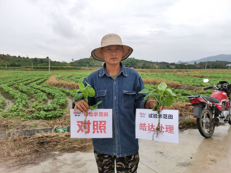 施肥時期:開花結莢期 時期問題:植株根系差,葉片黃,莖桿細長,花蕾少也不飽滿; 施肥方案: 葉噴:(30斤水用量) ①皓達功能肥500倍(或30mL)+皓達硼800倍(或20mL)+殺菌藥噴 ②皓達功能肥400倍(或40mL)+磷酸二氫鉀800倍(或20mL)+殺菌藥噴。注意:方案①②交換施用,間隔5-7天噴1次; 追肥撒肥:按每畝皓達功能肥0.5%(或100-200mL/畝)原液與肥料拌勻后撒施; 施肥效果:促進生長,莖桿粗壯節間距離短,花芽分化好,結莢率明顯提高,矮壯蹲實抗病抗風抗倒伏能力提高。