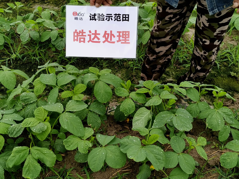 施肥時期:苗期 時期問題:苗弱生根差,徒長、莖桿細長,抗逆性差; 施肥方案:葉噴+滴灌(底肥拌肥)(30斤水用量) 葉噴:(30斤水用量) ①皓達功能肥800倍(20mL)+除草劑(選擇型) ②皓達功能肥250倍(60mL)+皓達硼800倍(20mL)+殺菌藥噴(控旺促生根) 注意:在毛豆第一片葉子時進行莖葉處理以防禾本雜草和闊葉雜草。 拌肥或淋施:用皓達原液0.4%與復合肥、除草劑拌勻后施底肥、追肥或在2葉1心時每畝用量皓達功能肥100-200mL與復合肥配合淋施 施肥效果:促進根系多生快發,出苗整齊蹲實不徒長;幼苗生長健壯對后期促進分枝形成,及花芽分化均有很好作用,有利根瘤菌發育,增強固氮能力。
