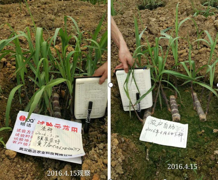 施肥時期:幼苗期 施肥方案:提苗肥 葉噴:皓達功能肥500-800倍(25-30mL/30斤水)配合殺蟲農藥一起葉面噴施1-2次。 施肥效果:在促進甘蔗苗和根系生長的同時,促進葉面積不斷擴大,提高光合作用,從而促進分蘗早生快發。