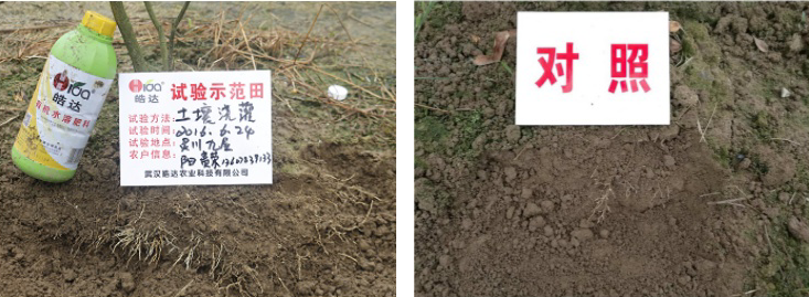為了高效利用皓達微生物次生代謝物技術,武漢皓達與華中農大等多家科研機構合作,共同開展了一系列篩選、應用方法及試驗示范研究。結果顯示,皓達微生物次生代謝物對果樹的生長和恢復具有顯著促進作用,促進根系恢復健康生長,增加毛根營養吸收面,讓果樹營養全面平衡持久供給,提高果實的產量和品質也有著顯著效果。