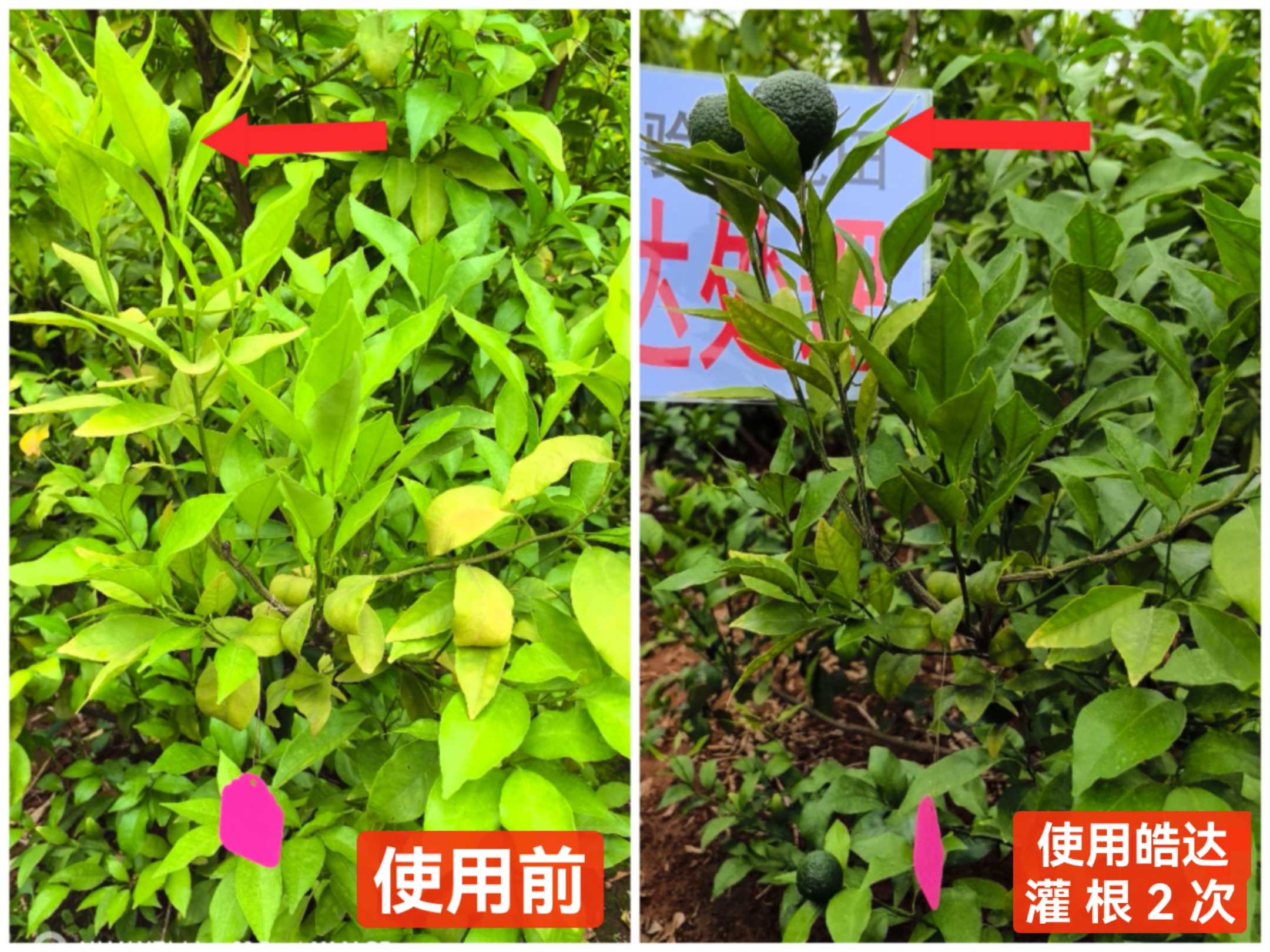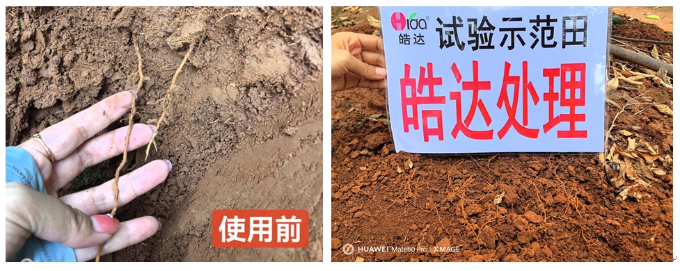 永勝縣濤源鎮(zhèn)上甘村趙老板的沃柑園黃化樹較多,經(jīng)過5月28日和6月15日2次皓達(dá)灌根方案處理后,黃化果樹葉片轉(zhuǎn)綠、樹勢恢復(fù)、根系發(fā)達(dá)、膨果迅速,皓達(dá)的效果老板很滿意。