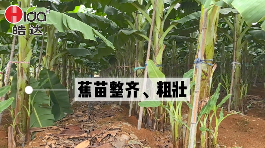 皓達(dá)淋根兩次、葉面噴施一次,現(xiàn)在的蕉苗整齊而粗壯。