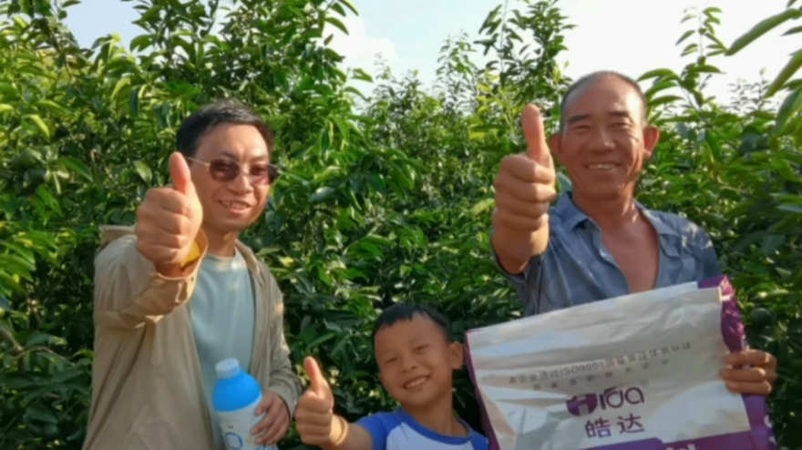 雖然余老板才用了兩次皓達產品,但對皓達在果樹上的的效果卻有非常深刻的感受:去年的果皮粗糙,今年用了皓達后葉片厚綠、果皮細膩油亮。