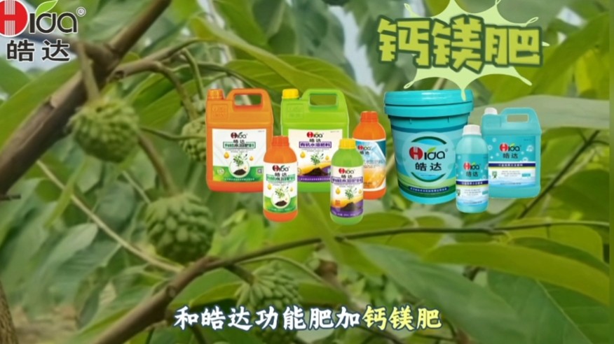 2.使用皓達功能肥+鈣鎂肥的營養(yǎng)施肥方案,主要作用是給幼果補充鈣,幼果鈣含量充足了,就會減少釋迦果的裂果率,鎂元素是參與葉綠素合成的一個必要元素,葉子越綠功能性越好,它產(chǎn)生的光合作用越強,碳水化合物越多,對樹勢的幫助越大。