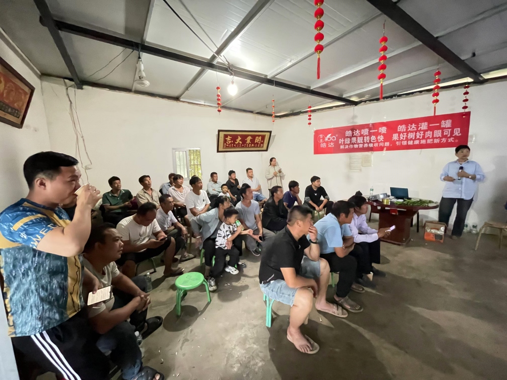 皓達(dá)農(nóng)化技術(shù)服務(wù)隊的梁老師,以其通俗易懂、繪聲繪色的精妙講解,向果農(nóng)朋友們介紹了如何促進(jìn)花芽分化、果實膨大著色,并叮囑果農(nóng)朋友們“精心培育果樹,歲歲豐盈,遠(yuǎn)離大小年之困!”