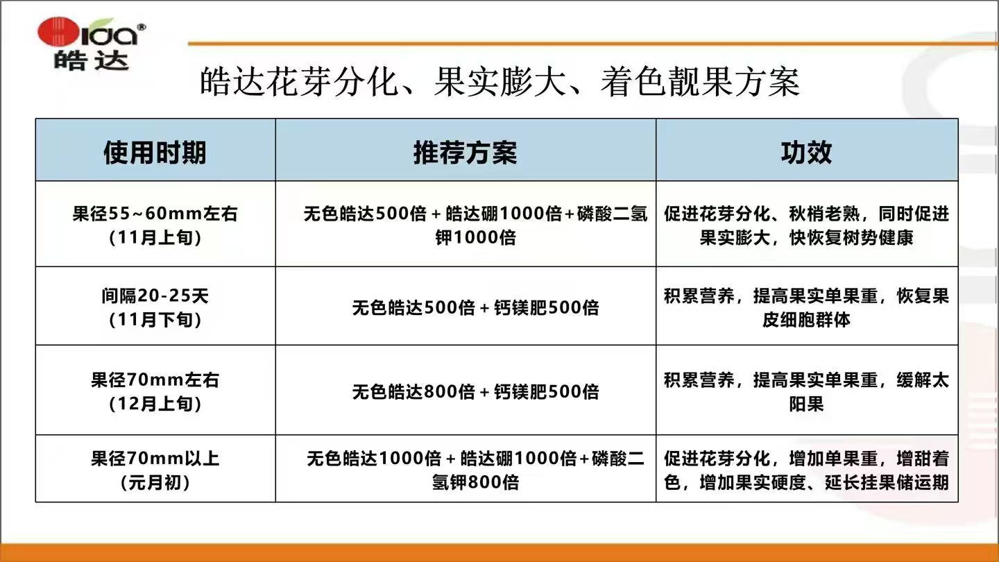 秋意漸濃,碩果盈枝。在這收獲的季節(jié),武漢皓達(dá)農(nóng)業(yè)科技有限公司于2024年10月31-11月4日,在云南省濤源鎮(zhèn)舉辦“柑橘花芽分化交流會”
