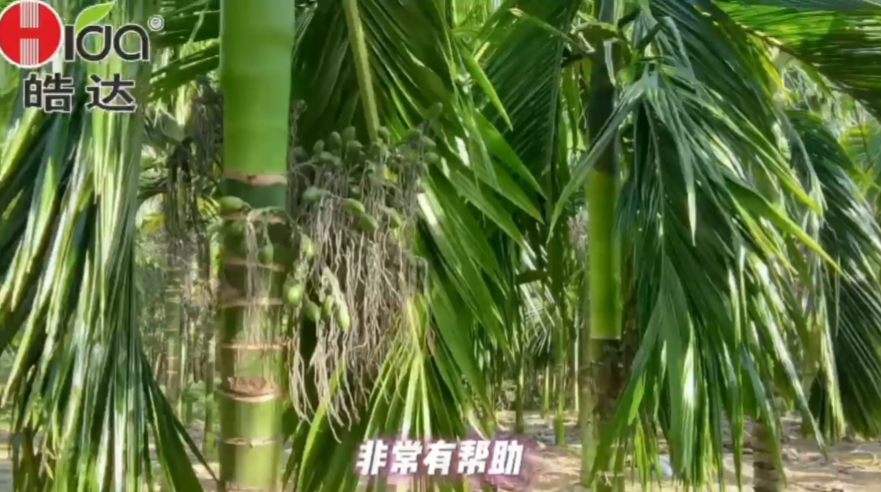 海南樂東抱羅農場林總用自己的親身體驗,講解皓達水溶肥在檳榔種植上的使用效果。