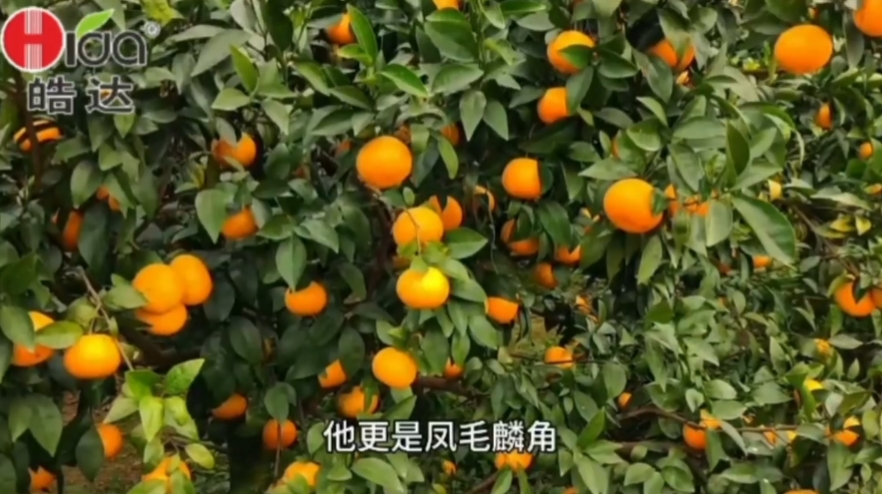 今年4月廣西氣候低溫多雨,柑橘保果難,龐老板接受施用皓達?;ā⒈9浅3晒?,后期膨果轉色又用了3次皓達,現在滿園的果子都是橘紅色,果徑已在65mm以上。