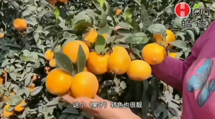 梁老板的沃柑從9月中旬開始第一次用轉(zhuǎn)色皓達(dá)有機(jī)水溶肥(俗稱白皓達(dá))噴果。