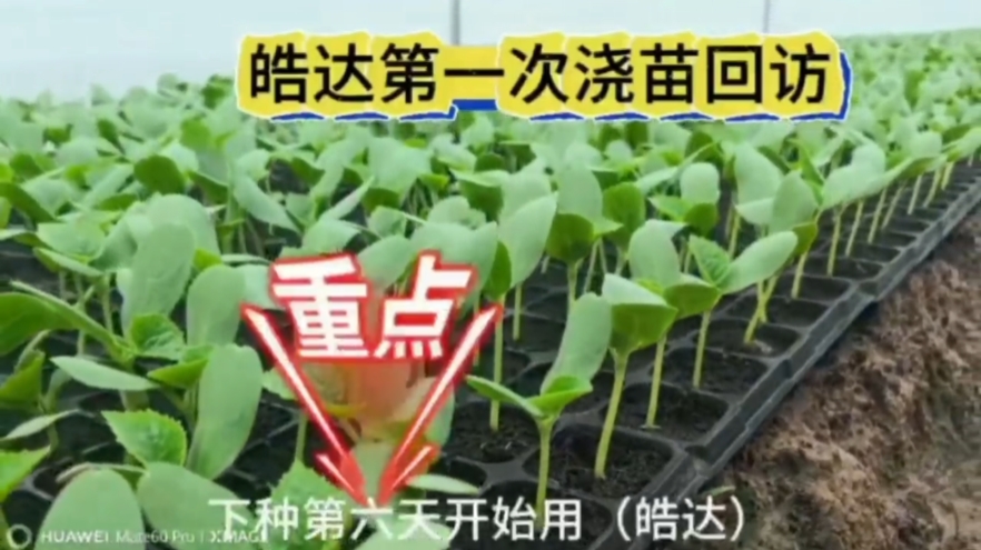 哈密瓜下種第6天即兩葉一心時,第一次用皓達500倍直接澆苗淋到根部濕透即可,操作方便。