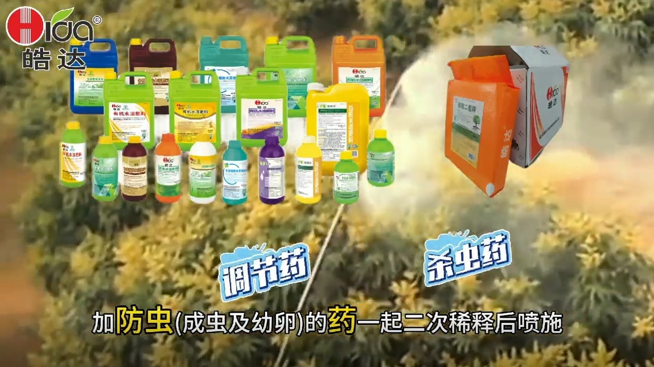 荔枝二保方案:皓達500倍+磷酸二氫鉀800倍+調節+防蟲(成蟲及幼卵)藥一起二次稀釋后噴施,噴藥時間最好選擇太陽落山后,約下午4-5點鐘,噴藥時注意必須把藥水充分噴施到幼果及葉片背面。