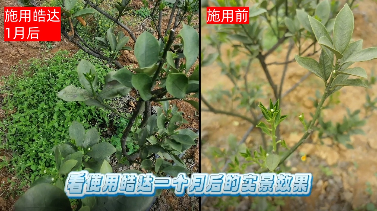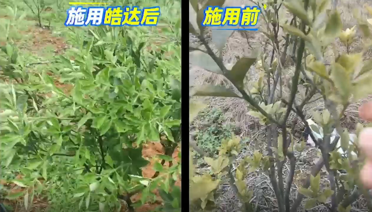 繼續皓達淋根和葉噴45天后,葉片厚綠、樹勢恢復健康,果農非常滿意。