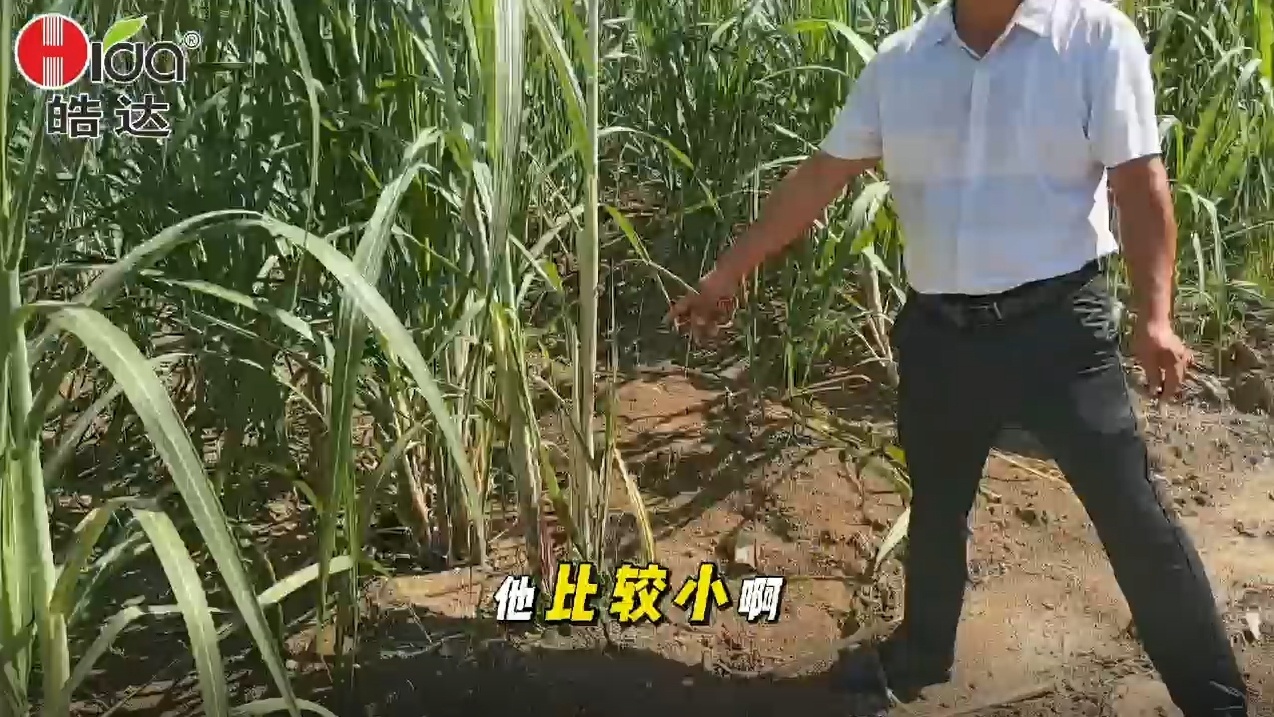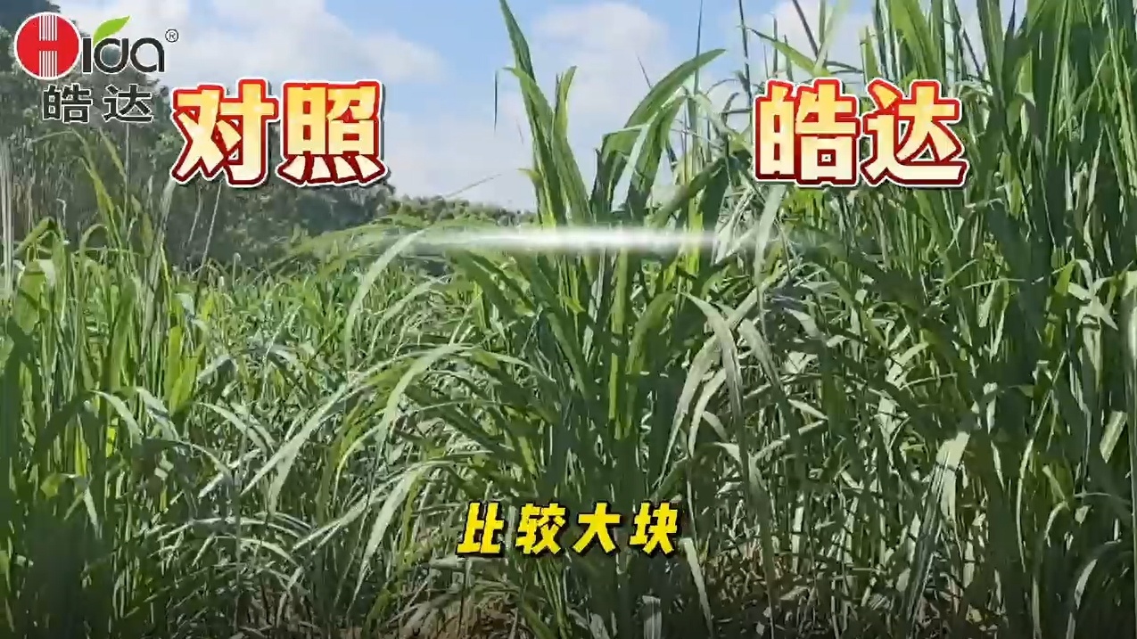 廣西貴港覃塘區李老板有甘蔗種植面積有600畝地,2024年5月中旬新植的甘蔗 被水泡過兩次,長勢很弱也不均勻,在7月份認識皓達,并且使用皓達,通過飛防皓達100毫升/畝地,同時自己留有對照下來,一個月后觀察效果明顯。