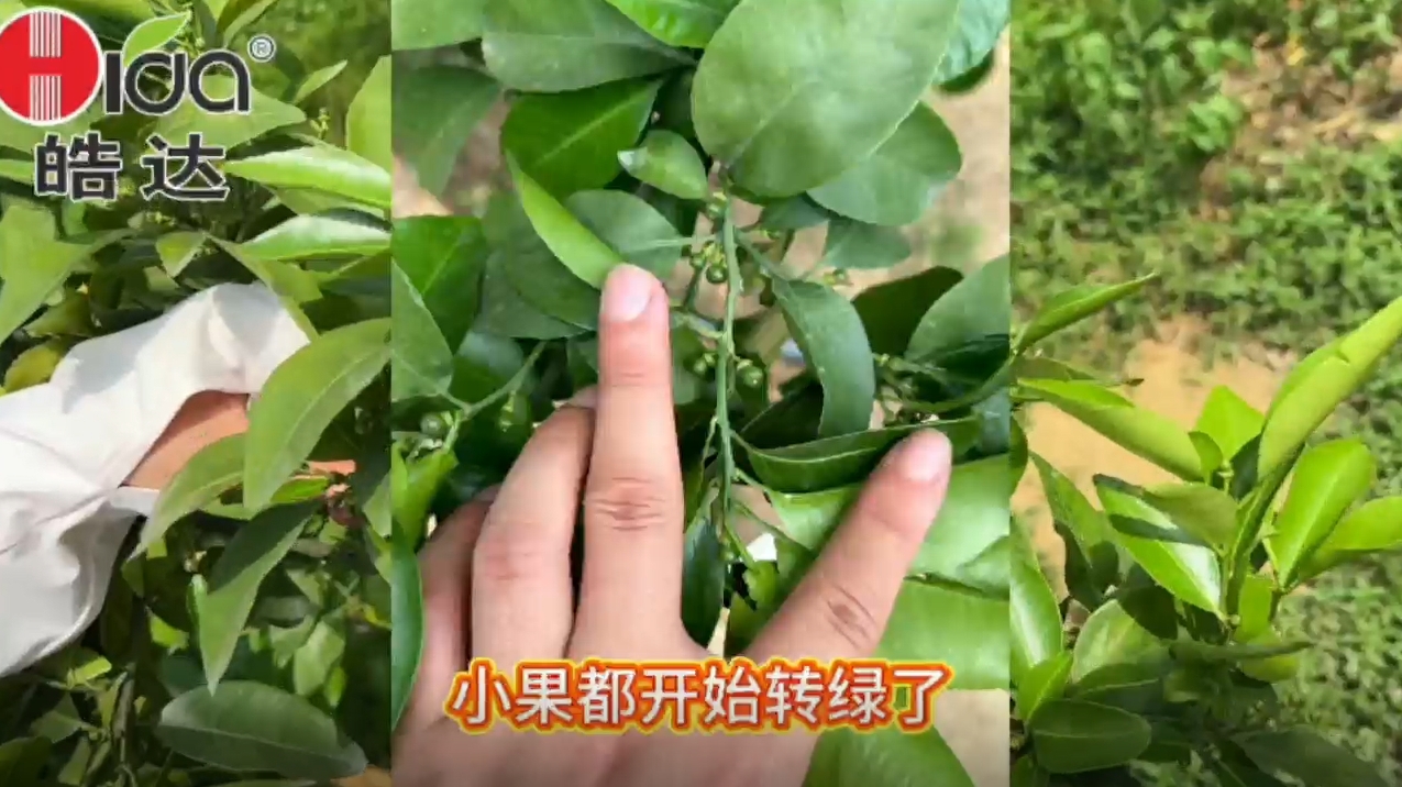原先最差的2株從3月17日開始噴施皓達3次,現在葉子轉綠了,果也保住了,而且開始轉綠了。