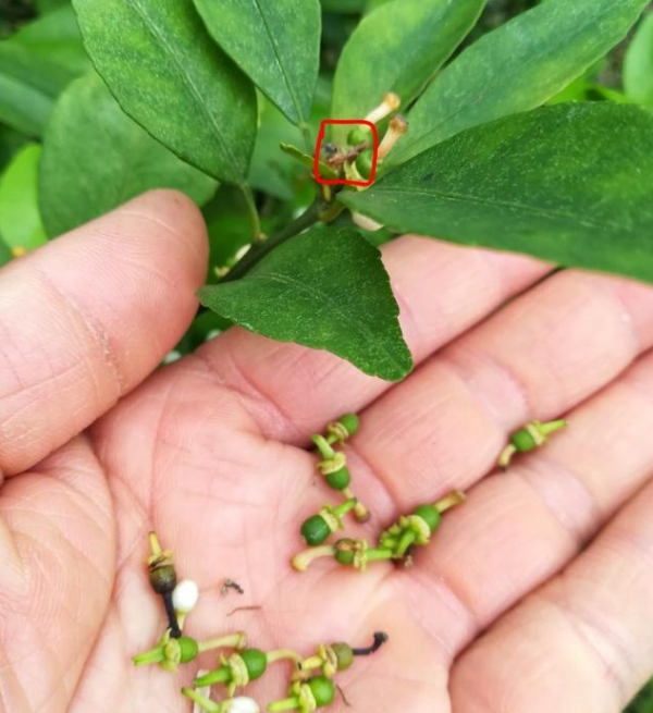(2)營(yíng)養(yǎng)充足,幼果膨大擠掉花瓣,自然保果。