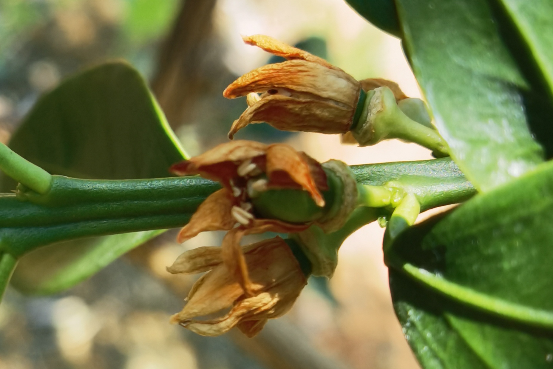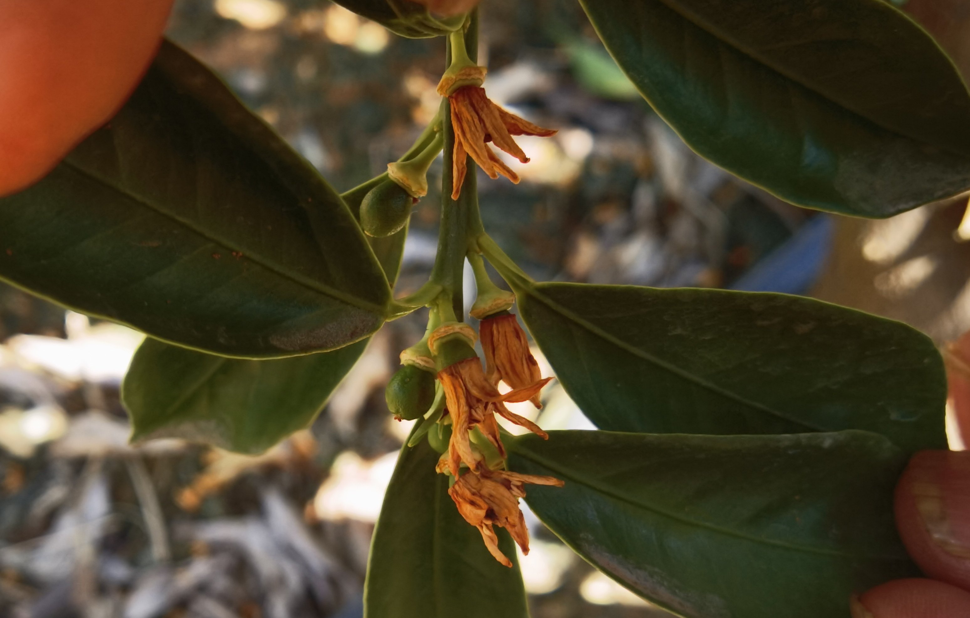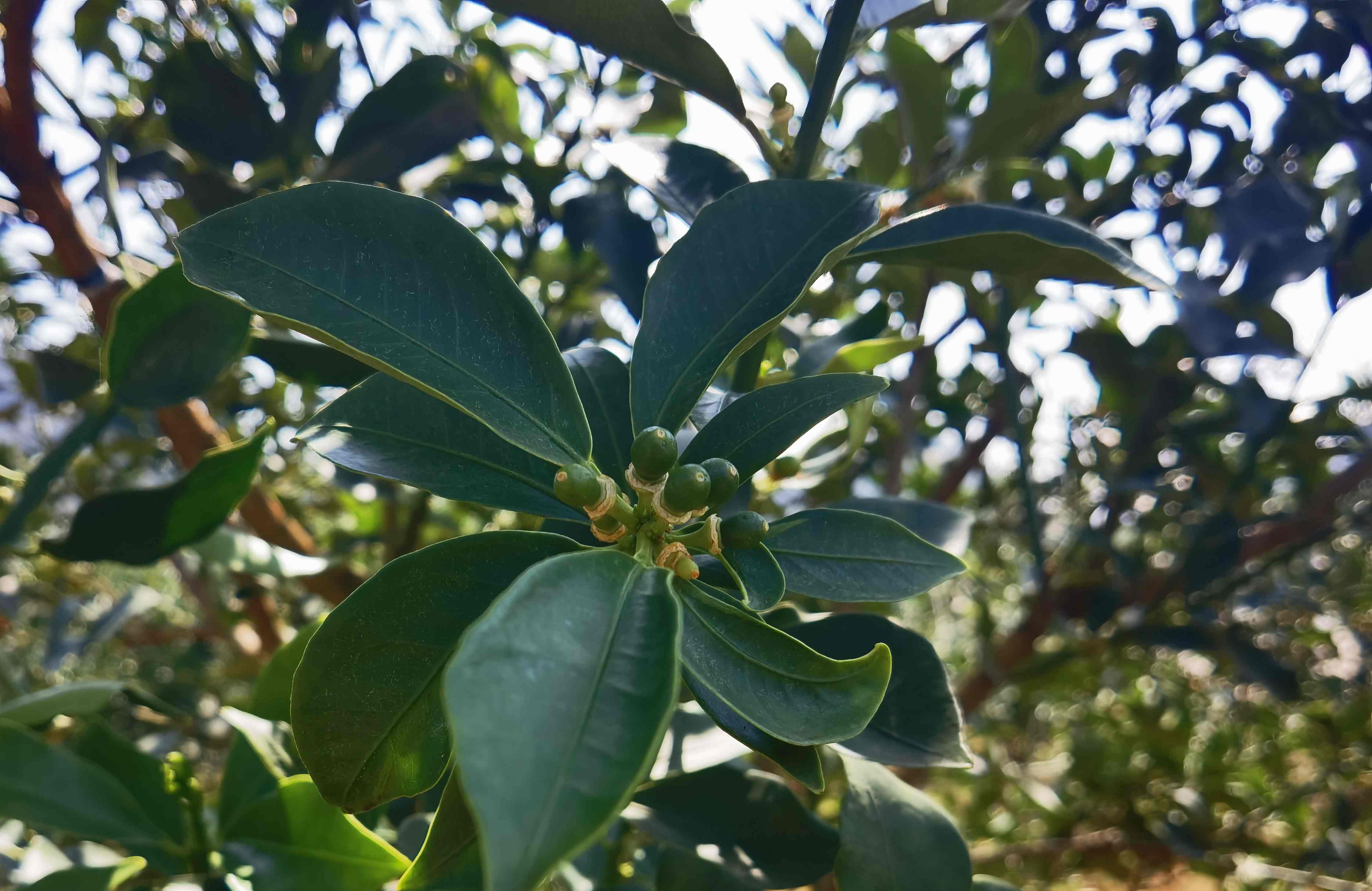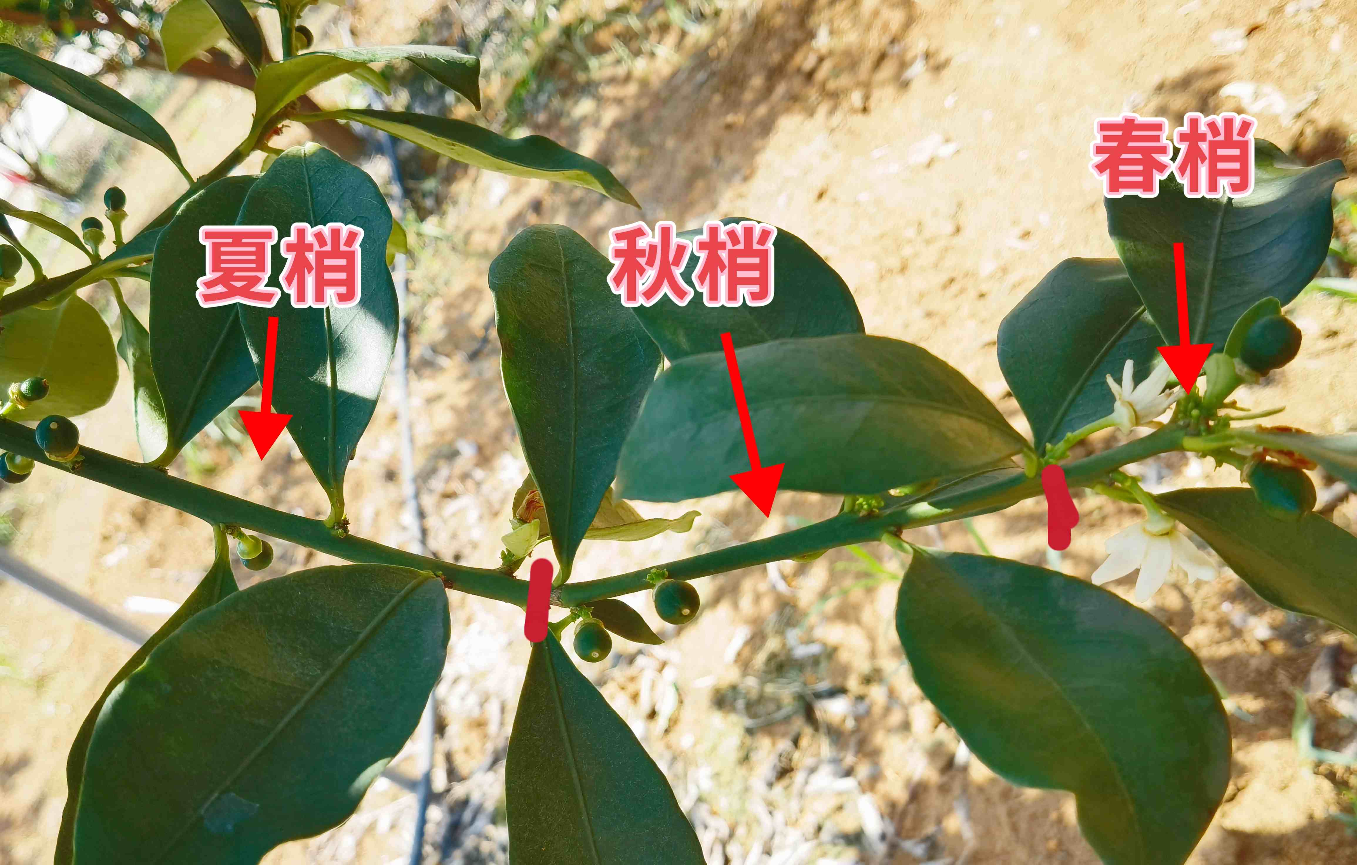 (1)春梢完全老熟,厚綠油亮,幼果謝花即轉(zhuǎn)綠。