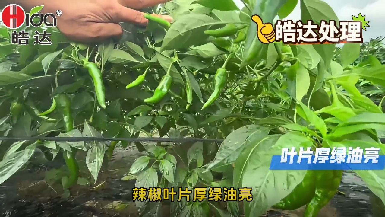 1.皓達(dá)處理的辣椒葉片厚綠油亮,辣椒又大又多。