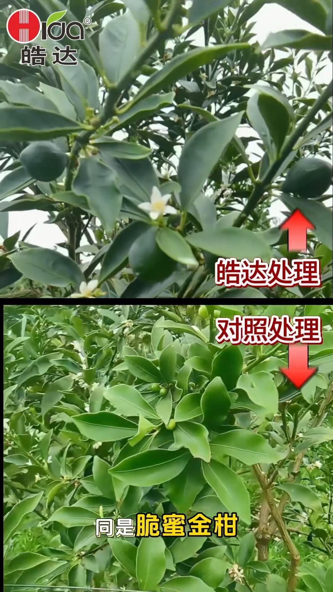 同是今年第一批花,皓達處理的脆蜜金柑已經快速膨果;對照處理的脆蜜金柑仍在艱難保果。