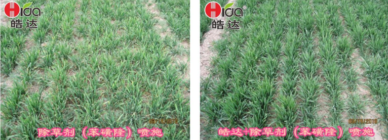 施肥時期:苗期 時期問題: 幼苗生長不整齊,發根、分蘗慢; 施肥方案: 葉噴:皓達功能肥1000倍(30-50mL/畝)+皓達螯合鋅1000倍(30-50mL/畝) 施肥效果: 使幼苗生長整齊健壯,促進發根、分蘗,有助冬小麥越冬。