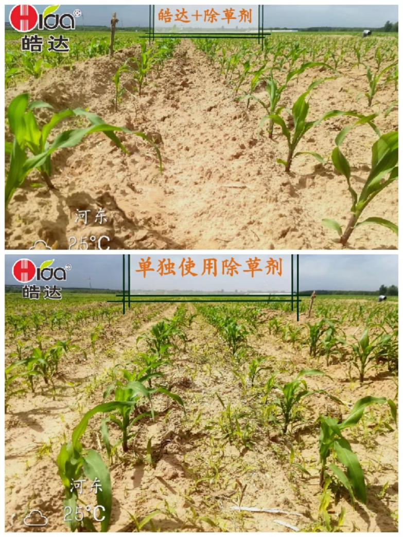 施肥時期:苗期 時期問題: 根細苗弱,幼苗抗逆性差,除草劑藥害; 施肥方案:(4-6葉) 葉噴: 皓達功能肥1000倍(30-50mL/畝)+皓達鋅1000倍(50mL/畝)+除草劑 施肥效果: 促根壯苗,提高玉米幼苗的抗逆性,配合除草劑施用,可以促進除草,并減輕和避免玉米苗受到除草劑藥害。