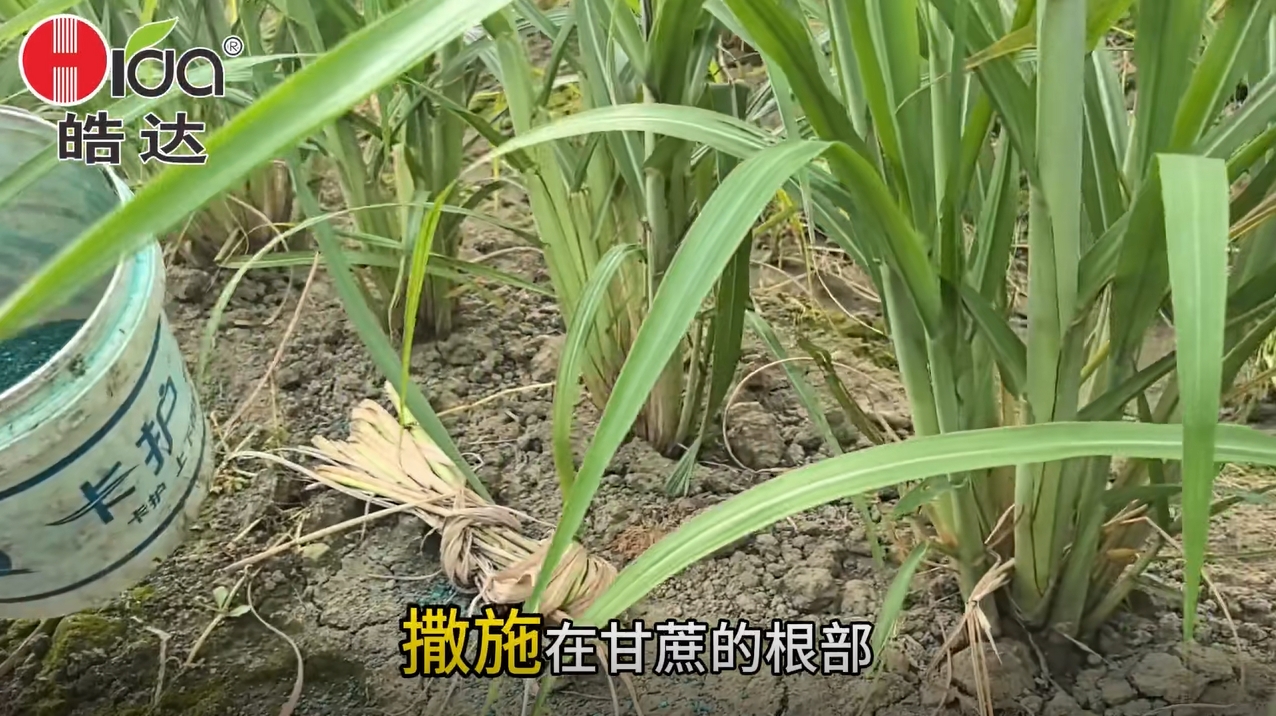 將拌好的復合肥撒施在甘蔗的根部,