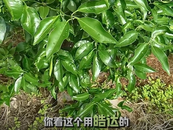 1、全程使用皓達(dá)方案管理的沃柑葉片厚綠油亮,養(yǎng)分充足,樹勢健壯。